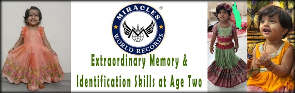 Baby I. Krishna Tamogna, D/o Mr. Krishna Chaitanya, Born on October 16, 2023, from Pragatinagar, Hyderabad, Telangana State, India, has been recognized in the Miracles World Records – Kids Category for demonstr...